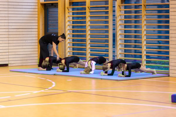 Sprung, Stufenbarren, Schwebebalken und Boden sind die vier Geräte, an denen die Mädchen im Kindes- und Jugendalter turnen.